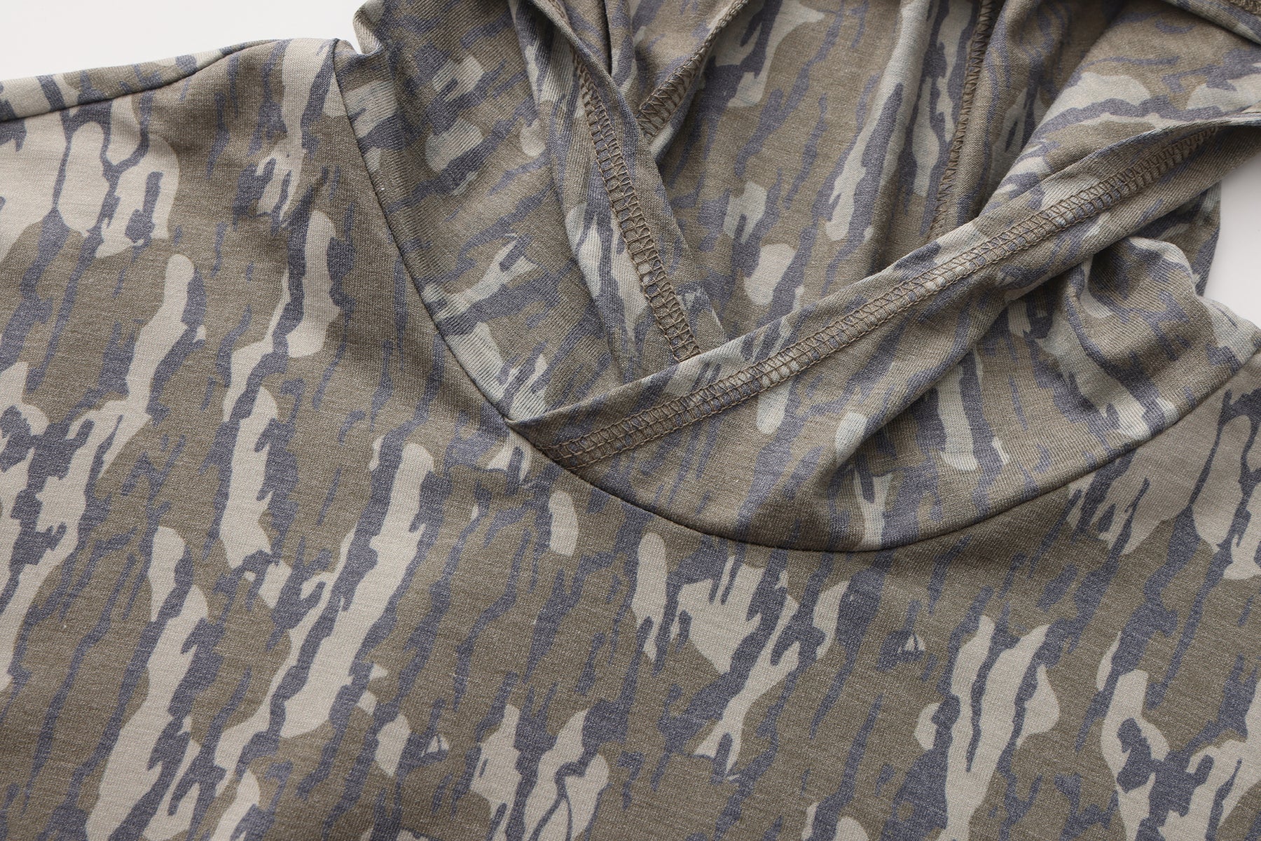 The pattern runs vertical bark and broken shadows that blend into trunks and dark hardwoods, from flooded timber and creek bottoms to big-woods ridges. It’s the piece you grab for wading into the timber at first light or leaning against a tree for one more sit when the birds or bucks should have already moved.