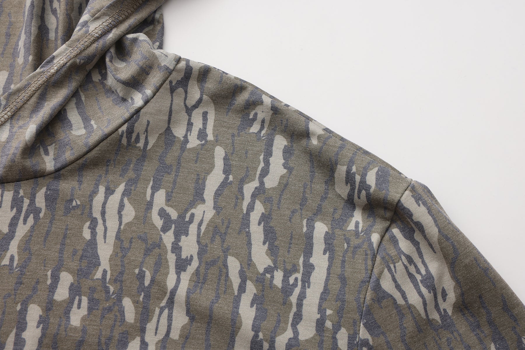 Built from a soft 65% polyester / 35% rayon blend, this hoodie stays quiet, dries fast, and feels good from the truck to the stand and back again. Run it as a lightweight outer early season, or slide it under your jacket as a stealthy mid-layer.